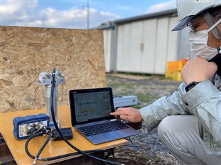 『MDT-61』は、Bluetoothを利用した無線ひずみ測定器です。100V電源を必要とせず、計測点の近くにデータ送信器を置き6点の変換器(ひずみ式変位計,圧力センサーなど)とMDT-61を有線接続してWindowsPC・タブレットとBluetooth無線で通信することで、面倒な配線の引き回し作業が簡略化され作業効率がグーンと向上します。屋外で移動して使用する場面では、特長を遺憾なく発揮します。